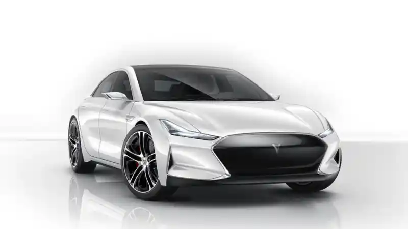 Bentuk eksterior tanpa malu-malu meminjam dari Model S yang merupakan saloon tanpa mesin melainkan motor listrik, dari garis atap melengkung dan bentuk tubuh ke gagang pintu tersembunyi dan dihitamkan gril depan. Gril depan berwarna hitam sebenarnya terinspirasi dari KITT, yaitu mobil yang ada dalam film Knight Rider. Grill ini adalah layar LCD yang dapat mensimulasikan berbagai efek grafis, sama seperti KITT.