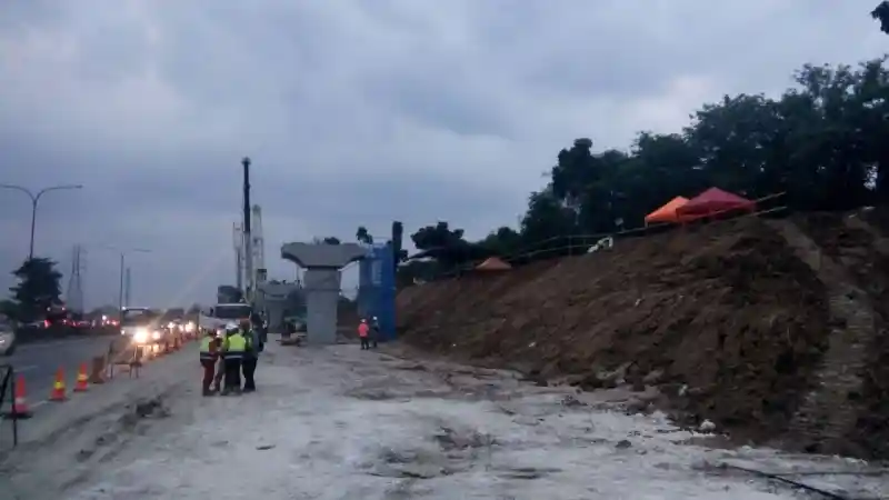 Progres proyek tol layang Japek yang membentang dari Cikunir sampai Karawang.