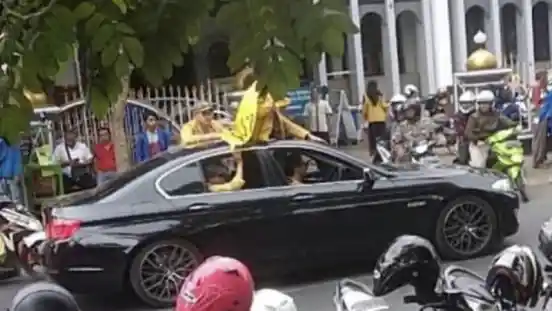 Dapat dilihat bahwa mahasiswa yang melakukan orasinya tersebut memenuhi sedan mewah asal Jerman tersebut. Tak ketinggalan mahasiswa tersebut juga berdiri melalui sunroof.