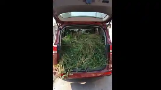 Memang tak ada yang salah mengangkut rumput pakan hewan kurban seperti sapi atau kambing pakai mobil seperti ini. Tapi tentu ada konsekuensinya.