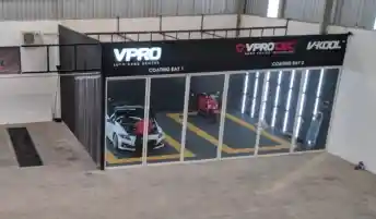 Bangunan yang terdiri dari 2 lantai ini dilengkapi 2 buah service bay sehingga dapat melayani hingga 2 unit mobil sekaligus untuk kebutuhan pemasangan kaca film.