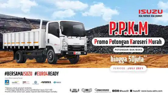 Program PPKM atau Promo Potongan Karoseri Murah, dilakukan oleh PT Isuzu Astra Motor Indonesia. Promo ini berlaku secara nasional, kepada pembeli Isuzu Elf baik Standar maupun Heavy Duty, bak maupun boks, akan mendapat potongah harga Rp 50 juta. Tentu dengan syarat dan ketentuan yang berlaku.