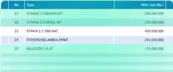Pada daftar tersebut tertulis bahwa Nilai Jual Kendaraan Bermotor (NJKB) Staria di angka Rp 450 juta. Tentu ini bukan angka yang akan dirilis saat mobil ini dilempar ke dealer. Angka ini belum terhitung setelah dikenai pajak. Tertulis juga informasi bahwa mobil tersebut menggunakan mesin diesel 2.2 Liter yang kami sinyalir merupakan mesin yang sama dengan yang digunakan pada Palisade.