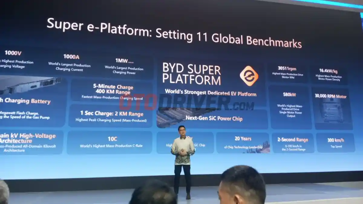 "Kami dengan bangga memperkenalkan teknologi charging yang singkat, dinamakan MegaWatt Charger, yang sanggup mengisi penuh baterai mobil listrik hanya dalam 5 menit untuk jarak tempuh 400km," ungak Bobby Bharata, Head of Product, PT BYD Motor Indonesia.