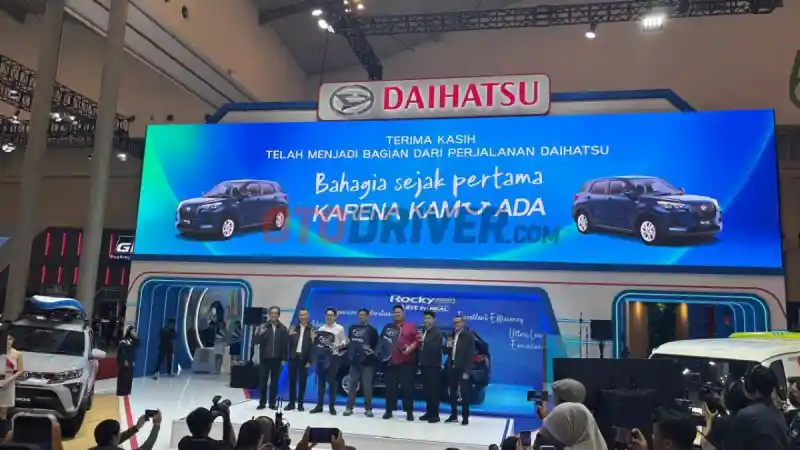 OTODRIVER - Daihatsu memanfaatkan momentum gelaran GAIKINDO Jakarta Auto Week (GJAW) 2025 di ICE BSD, Tangerang, dengan menggelar seremoni penyerahan tiga unit pertama Daihatsu Rocky Hybrid kepada konsumen.