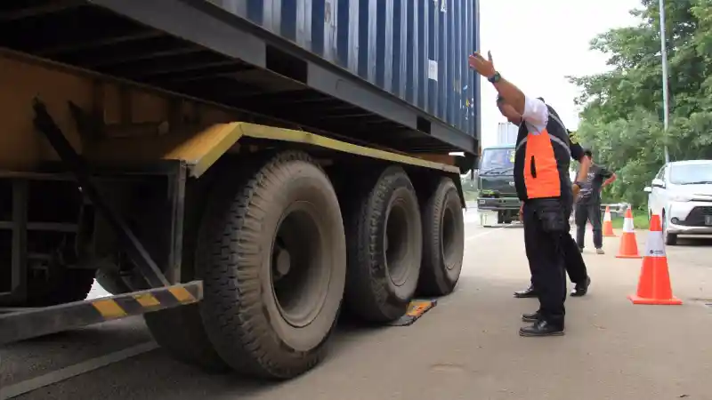 Setiap truk yang terjaring razia ditimbang sumbu rodanya.