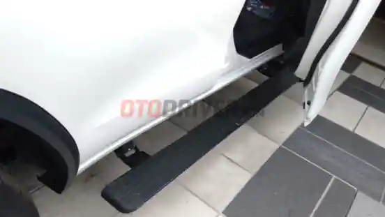 “Sistem yang mengatur buka tutup footstep terhubung dengan masing-masing sisi pintu. Semisal footstep kanan terhubung dengan pintu kanan depan atau belakang,” imbuhnya. “Pemasangannya pun tidak sulit dan menggunakan sistem kelistikan standar dari kendaraan,” sambungnya.