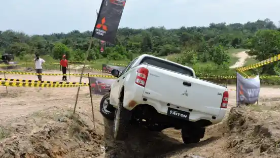 Masih dalam rangkaian acara peluncuran Mitsubishi All New Triton yang dilakukan oleh Agen Pemegang Merek (APM) PT. Kramayudha Tiga Berlian, Triton diajak melahap rintangan buatan yang berlokasi di Taman Tenayan, Pekanbaru Riau 13 Agustus 2015 ini.