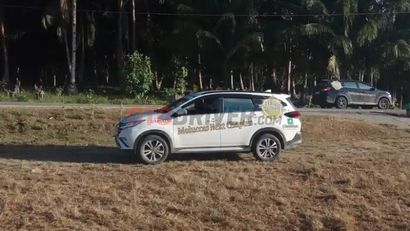 "Saat menuju ke danau Rana (pulau Buru), permukaan jalan terdiri dari batu-batu besar. Bahakn saat ada tanjakan dengan kemiringan sekitar 45 derajat, kami cukup kesulitan, namun dengan teknik mengemudi yang benar maka berhasil juga menanjak. Walau sempat 2 unit Terios harus pecah ban karena batu-batunya besar!," ujar Brian Priambudi, salah satu peserta jurnalis yang ikut ekspedisi sejak hari pertama.