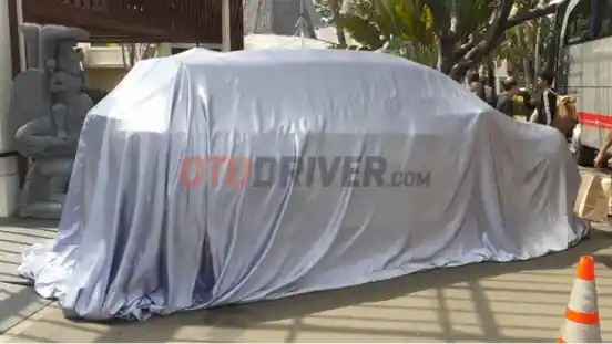 Sebuah unit yang akan muncul tersebut sudah tampak sosoknya dan tengah dibungkus kain penutup. Besar kemungkinan unit ini merupakan Wuling Almaz 7 seater.