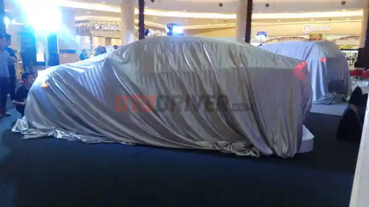 Dari dugaan kami, yang akan meluncur adalah Honda Civic Turbo. Unit tersebut masih diselimuti kain penutup, namun dari siluet tubuhnya, dapat diterka bahwa ini adalah sebuah Civic Turbo model sedan.