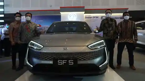 Salah satu yang menarik dari keikutsertaan DFSK di GIIAS Surabaya 2021 adalah kehadiran sebuah mobil dengan teknologi elektrifikasi yang dilabeli Seres SF 5.
