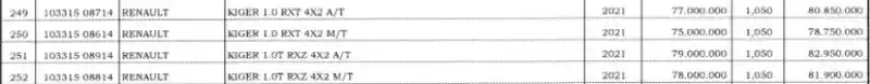 Harga Nilai Jual Kendaraan Bermotor (NJKB) yang tertera di daftar tersebut mulai dari Rp 77 juta untuk Kiger RXT manual. Hingga Rp 79 juta di Kiger RXZ otomatik.