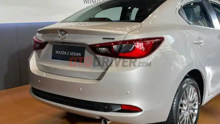 Kini New Mazda 2 Sedan hadir dengan tampilan yang semakin mewah dan lebih sporty lewat penyematan penggunaan pelek 16 inci, lampu depan menggunakan LED projector dengan auto on/off dikombinasikan oleh DRL. Serta Mazda juga memberikan automatic wiper dengan sensor hujan.