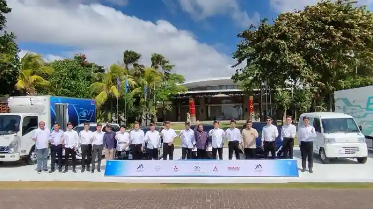 Lima Agen Pemegang Merek (APM) otomotif Jepang yakni Toyota, Nissan, Mitsubishi, Isuzu dan Mitsubishi FUSO meluncurkan Joint Project for EV Ecosystem di Nusa Dua, Bali (27/7).