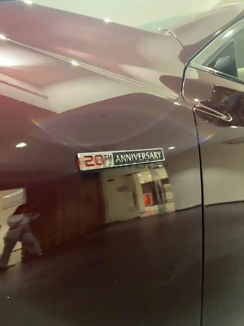 Pada bagian panel depan samping kiri dan kanan terpasang emblem bertuliskan “20th Anniversary”. Sentuhan lain terdapat pada corak pelek yang dibuat high glossy dan agak gelap, tapi desainnya tetap sama dengan model sebelumnya.