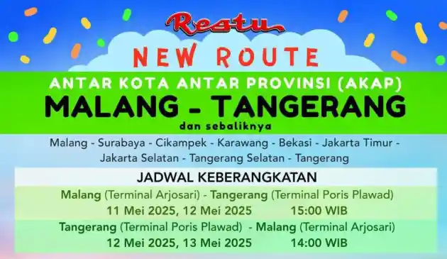Kali ini, PO Restu Panda yang merupakan operator asal kota Malang rilis jalur baru dari titik awal Tangerang dan juga Malang.