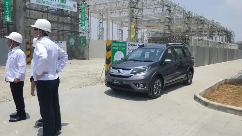 Tapi kami mendapat bonus lain saat bertandang ke sana. Saat memperlihatkan konstruksi bangunan pabrik crankshaft ini, ada sebuah Honda BR-V. Dan yang menarik, BR-V ini berbeda seperti prototipe yang ada GIIAS Agustus lalu.