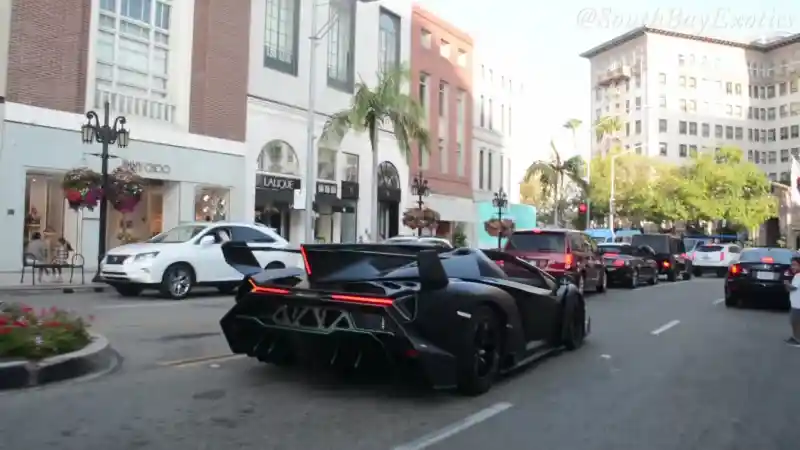 Makanya ketika sebuah Veneno Roadster turun ke padatnya jalanan Beverly Hills, Amerika Serikat, sontak orang di sekitarnya langsung terkesima dan mengambil gambar mobil eksotis itu. Entah mau ke mana, si pengemudi Veneno itu kelihatan sempat bingung mencari jalan dan beberapa kali terjebak kepadatan lalu lintas.