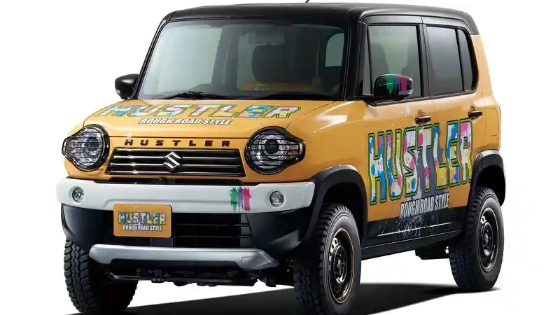 Sementara nuansa citycar tetap bertahan dari dimensi Hustler Rough Road Style yang mungil. Serta aplikasi mesin 658 cc 3-silinder DOHC turbo. Sebagai finishing, dipilih warna kombinasi kuning dan atap hitam dengan decal sticker beraneka warna pada pintu dan kap mesinnya.