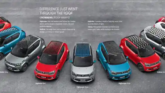 Jika para konsumen tertarik untuk membuat Ignis-nya lebih keren, mereka dipersilakan untuk membeli secara paket ataupun mengkombinasinya sendiri. Seperti untuk spoiler belakang, terdapat berbagai macam pilihan corak, mulai dari Carbon-fibre look, Tinsel Blue, Glistening Grey, Pearl Arctic White, Uptown Red dan Silky Silver.