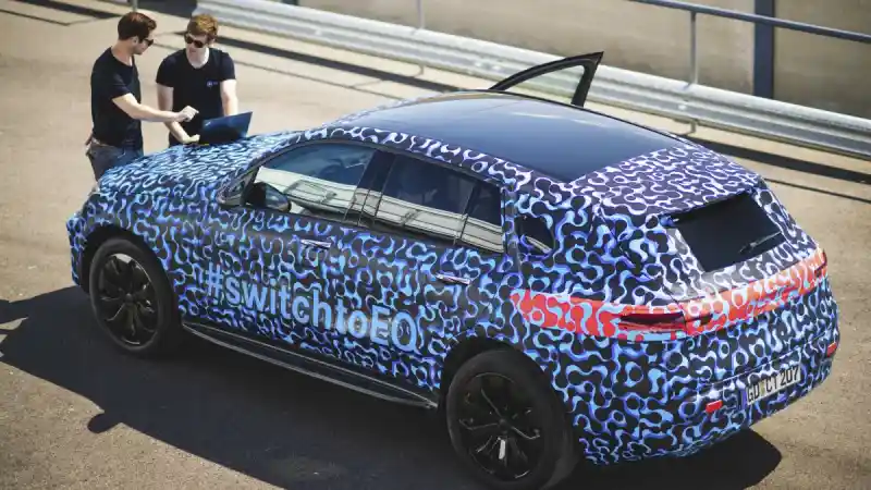 Mercedes-Benz sendiri sudah hampir 4 tahun melakukan pengetesan dan mereka menyediakan 200 unit prototipe EQC untuk dites. Seluruh mobil tes ini ditutupi kamuflase berwarna biru dengan tulisan #switchtoEQ.