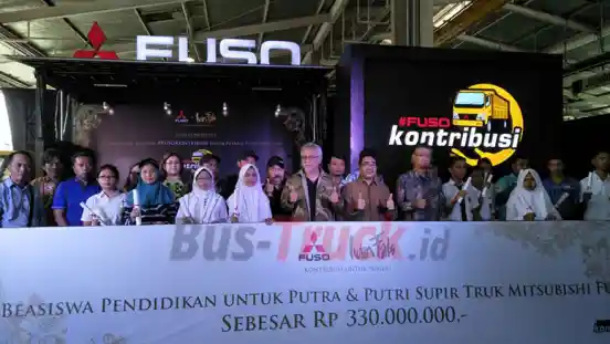 Beasiswa penuh dari Mitsubishi FUSO ini, diberikan kepada 11 anak supir truk dengan total Rp 330 juta di mana masyarakat Indonesia turut berkontribusi dengan menyumbang 12.578 tagar #FUSOkontribusi senilai Rp 125.780 juta.