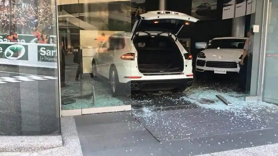 Entah apa yang dipikirkan Chu, ia tak bisa mengendalikan emosi dan menabrakkan dealer tersebut dengan sebuah Cayenne ke showroom. Kaca tempat memamerkan mobil tersebut sudah hancur, Chu malah kembali menekan pedal gas dan mengahantam meja pelayanan.
