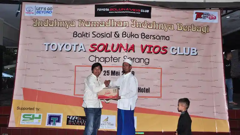 Komunitas TSVC (Toyota Soluna Vios Club) Chapter Serang, Banten, dan sekitarnya mengadakan kegiatan Buka Bersama dan Bakti Sosial bertema “Indahnya Ramadhan Indahnya Berbagi”.