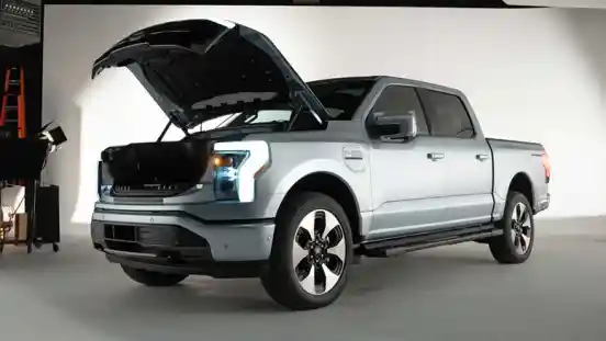 Bisa dibilang, ini adalah ekspansi dari keluarga pikap F-150 versi elektrik. Memiliki kabin luas bak yang besar, juga tambahan bagasi di depan! Tentunya, fitur dinamakan 'frunk' alias front trunk (bagasi di depan) itu, tempat yang biasanya mesin berdomisili.