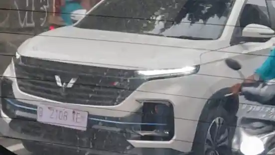 Dari unggahan story Instagram @idltpawsf pada Rabu nampak sebuah Wuling Almaz berkelir putih dengan identitas ornamen strip biru pada bagian bumper. Namun dikabarkan bahwa beberapa bagian dari mobil salah satunya adalah emblem bertulis Hybrid nampak ditutup dengan lakban.