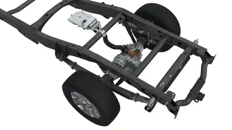 Magna menawarkan sesuatu yang lebih menarik yakni motor listrik yang sekaligus menjadi gardan. Ya motor listrik ini ditempatkan sepertihalnya bonggol pada third member yang kemudian langsung disalurkan ke roda kiri ataupun kanan.