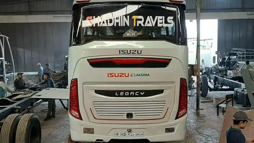 Dalam foto di atas, bus ini terlihat masih dalam pengerjaan di karoseri lokal negara beribukota Dhaka tersebut. Namun hanya bagian belakangnya yang diperlihatkan. Meski bukan buatan karoseri Laksana, tapi ada logo karoseri asal Ungaran ini termasuk pada emblem Legacy di kap mesinnya.