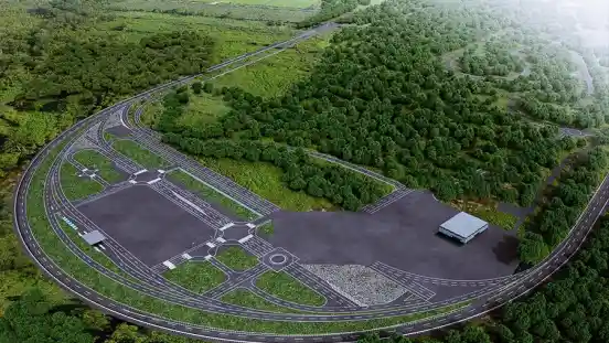 Tidak ketinggalan ada jalur untuk pengujian fitur keselamatan berkendaraan serta kendaraan seperti ADAS.