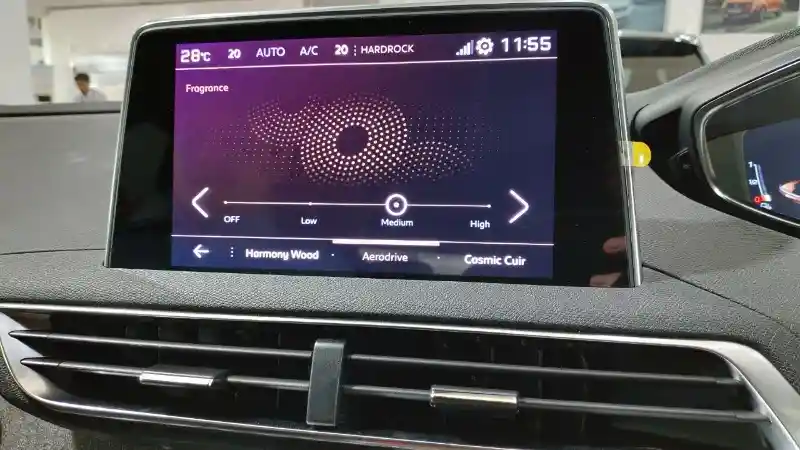 Ada 3 pilihan aroma wangi serta memiliki karakteristiknya masing-masing. Harmony Wood; Aroma khas standar untuk atmosfir kabin kendaraan yang rileks. Cosmic Cuir, aroma yang bersemangat, sensual, dan merupakan aroma khas Peugeot. Terakhir, Aerodrive, aroma kian hidup dan membangkitkan gairah dan merupakan aroma standar untuk mode Boost.
