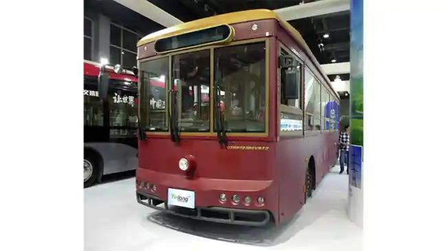 Bus listrik ini tampil unik karena eksteriornya tampak seperti trem listrik kuno. Kaca depan bus dibagi dalam tiga bilah. Di masing-masing bilah kaca terdapat sebilah windshield wiper.