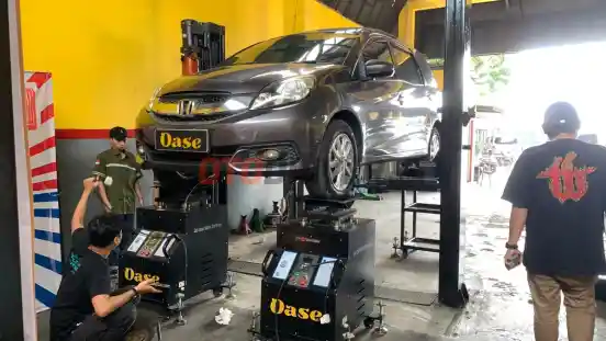 Garasi Oase tidak hanya melayani mobil-mobil umum, tetapi juga siap menangani kendaraan premium yang menggunakan sistem suspensi udara (airsus).